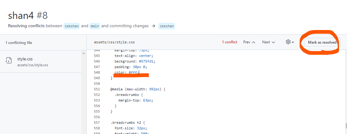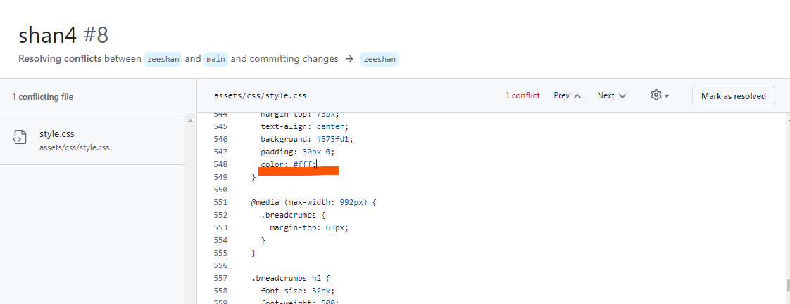 아래와 같이 충돌난 부분을 확인할 수 있고,  새로운 내용으로 수정합니다.