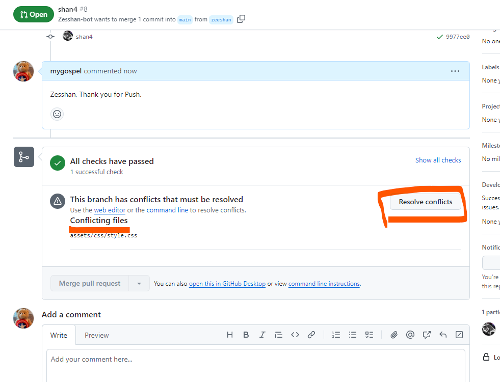 깃허브는 소스에 충돌이 있는지 등을 알려줍니다.