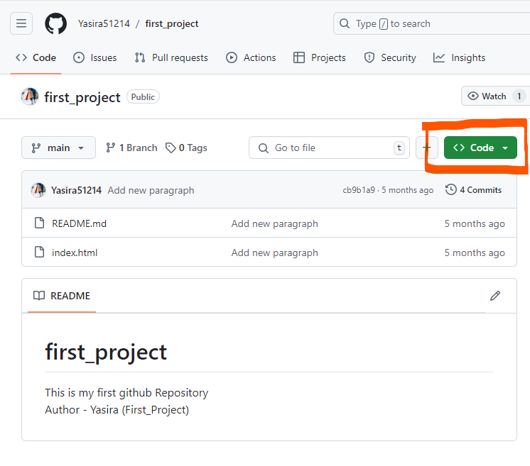 저장소 이름 오른쪽에 Clone 이라는 링크를 클릭하면 해당 저장소를 내 컴퓨터에 Clone 할 수 있습니다.