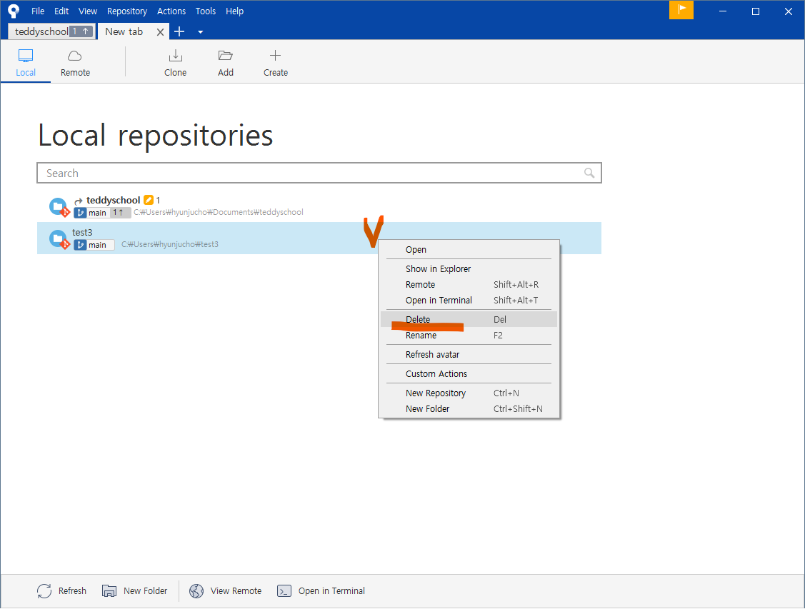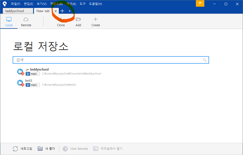 탭으로 여러 저장소를 관리할 수 있다는 것을 확인할 수 있습니다.