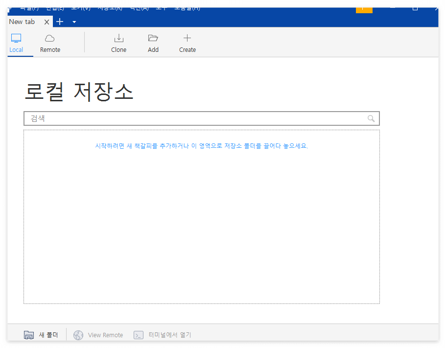 git init 을 하지 않은 폴더를 끌어다 놓으면 아래와 같이 나타납니다.