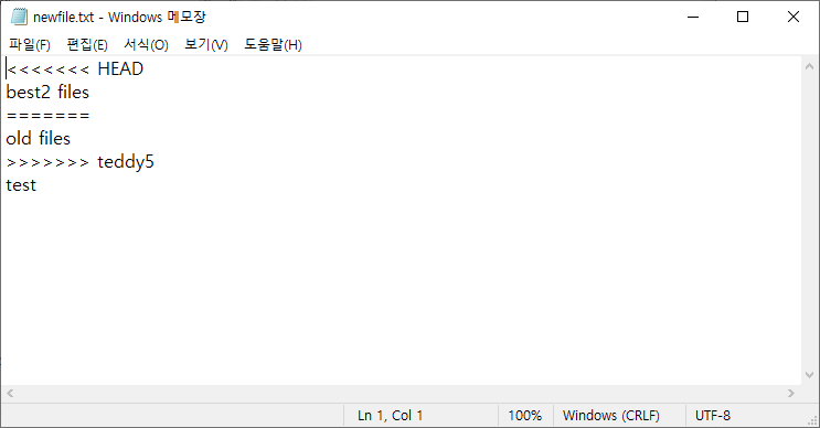 메모장이 뜨는데 수정하고 저장한 후 커밋하도록 하자.