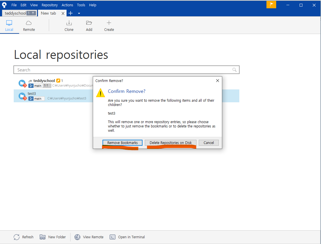저장소를 등록한 북마크만 삭제한다.