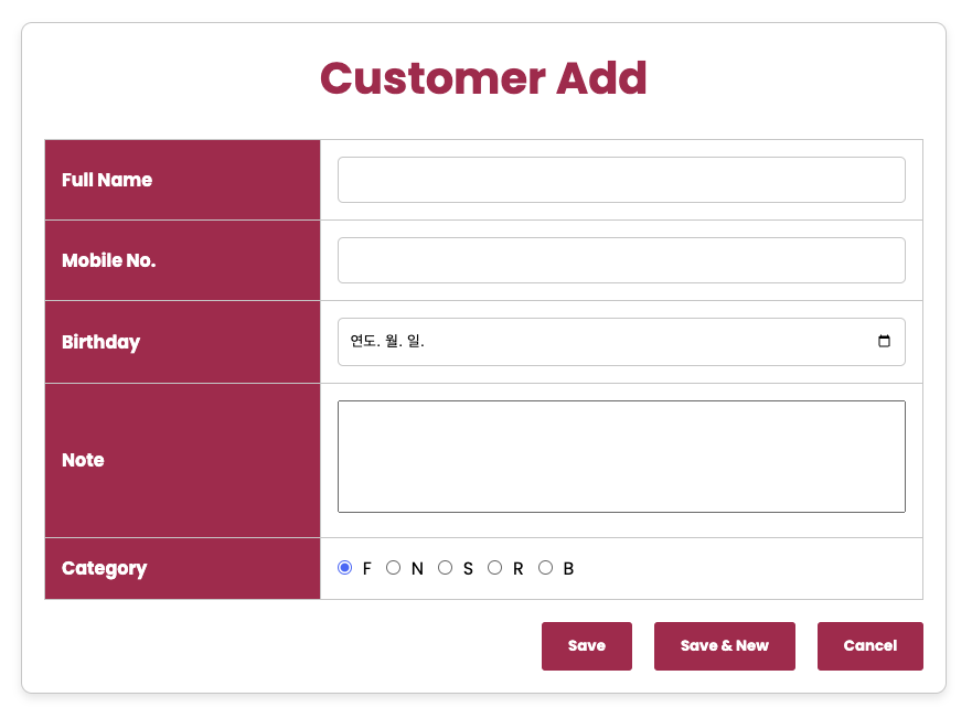 <div class="text-center"><h3 class="text-danger">Customer Add</h3></div>